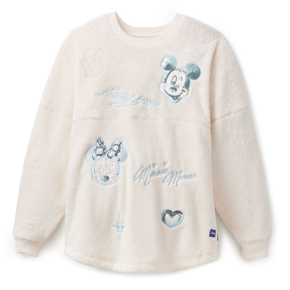 Cozy meets dazzling in the Mickey and Minnie Mouse Polar Fleece Pullover by Spirit Jersey. Crafted from ultra-soft polar fleece, this winter-ready top features sparkling sequin-accented appliqués of Mickey and Minnie on the front, along with their embroidered signatures for an extra touch of charm. The back showcases a bold satin appliqué of Minnie’s signature surrounded by whimsical embroidered icons. Warm, plush, and full of personality, it’s the perfect layer for festive outings—or snuggling up in seasonal style.