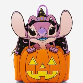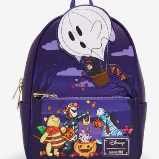 Inspired by the grandfather clock featured in the Haunted Mansion attraction, this Loungefly crossbody bag includes applique details on the front, including a glow-in-the-dark clock face and eyes. The bag also has moveable hands and a removable die-cut Haunted Mansion plaque charm. Retail price: $64.90 Bring along Pooh Bear, Tigger, Piglet, Eeyore and Christopher Robin on your next spooky adventure! This Loungefly mini backpack features the crew in their Halloween costumes and an applique of Christopher Robin in a hot air balloon. Retail price: $79.90 This is Halloween. Bring Scary Teddy to your next nightmare with this Loungefly mini backpack. The bag features a Scary Teddy jack-o-lantern applique with glow-in-the-dark elements and an allover print of Scary Teddy jack-o-lanterns as well as candy corn and bats. Retail price: $84.90 Double, double, toil and trouble! This cauldron-shaped crossbody bag featuring a design inspired by Hocus Pocus will cast a spell on your Halloween season! A lenticular portrait on the top switches between bubbles and a design of Winnifred Sanderson. Retail price: $70 Satisfy your sweettooth with this Minnie Mouse Candy Corn Mini Backpack by Loungefly. The design features 3D ears, a candy corn hat, lace and bow appliques as well as glow-in-the-dark details. Retail price: $79.90 Mickey is dressed up in his scarecrow costume on this Loungefly mini backpack. The design features 3-dimensional ears, a felt hat applique, and applique overalls and straw details. His outfit features a rope belt and patchwork detail. Retail price: $84.90 This Maleficent Mini Backpack by Loungefly will add some villainy to your outfit. The bag features applique Maleficent wings and horns as well as debossed details on the front. The back has a full-color portrait of Maleficent among flames, with the dragon raising above. Retail price: $84.90 Grogu is ready for trick-or-treating! The adorable mini backpack features an allover print of Grogu in different Halloween costumes, including as a ghost, pirate, mummy and more! The front pocket includes an applique of Grogu in his pram, which has been filled with candy and pumpkins. Retail price: $79.90 Angel is ready to celebrate Halloween! This Loungefly mini backpack features an applique of Angel wearing a witch hat. The front pocket has a jack-o-lantern applique with glow-in-the-dark details and a lollipop zipper pull. The back features a portrait of Stitch sitting in a pumpkin. Retail price: $84.90 Join the Dark Side with this Darth Vader Halloween Loungefly Mini Backpack. The front pocket features a pumpkin applique with a glow-in-the-dark Darth Vader design. Plus, the allover print features the Empire and Rebel insignias and an orange and black color scheme. Retail price: $79.90Boxlunch Halloween Disney Loungefly Bags