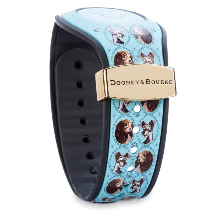 Two perfect pooches grace the band of this MagicBand2. The allover print features portraits of Lady and the Tramp, the stars of Walt Disney's 1955 classic film.