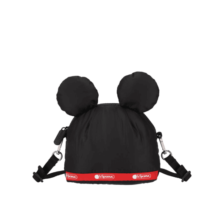 Features puffy mouse ears at top, Zip main closure, Interior back wall open pocket, 1.5in/3.5cm wide adjustable/detachable webbing strap (Max length: 40 in/101.6 cm, Min length: 33in/84cm)